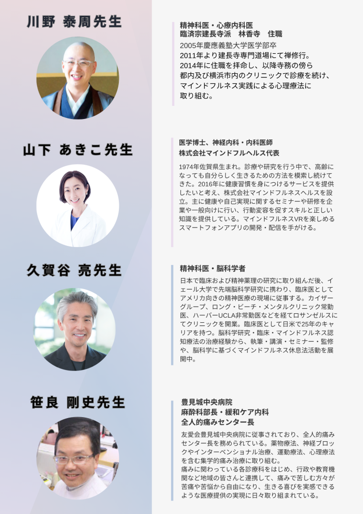 マインドフルネス・スタートアップ講座 お知らせ, イベント 2025年9月18日By asa / 2025年9月18日 2025年度も開催! 医療や教育現場など、さまざまな場面で注目が集まっている「マインドフルネス」 しかし、日本ではまだまだその目的や効果が浸透しているとはいえない現状です。そこで本講座ではマインドフルネスについて、知り・体験していただくことを目的として開催いたします。 患者さんへの支援の一つとして、そしてご自身のセルフケアとして学んでみませんか。 今年も豪華な講師の先生方にお集まりいただくことができました! さまざまな分野の実践報告もお楽しみに。 QRコードまたは下記よりお申し込みください。 スタートアップ講座申し込みフォーム